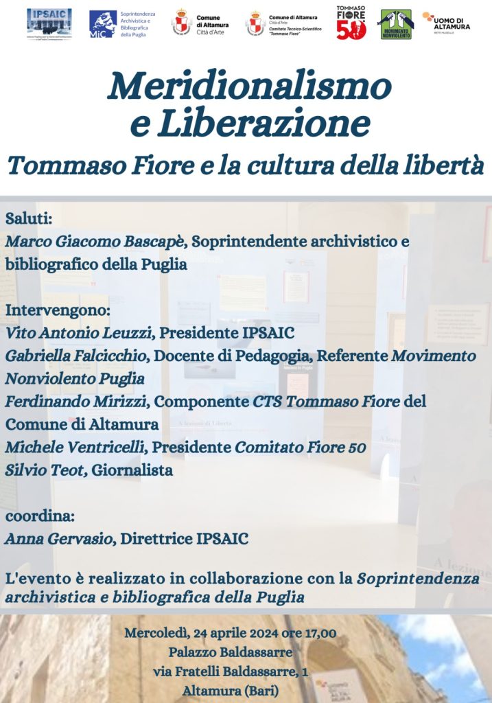 Mercoledì, 24 aprile 2024 ore 17.00 presso il Palazzo Baldassarre di Altamura si terrà il convegno dal titolo