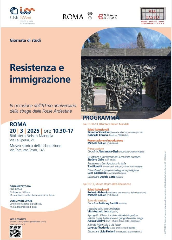 In occasione dell'81mo anniversario della strage delle Fosse Ardeatine, presso la Biblioteca Nelson Mandela di Roma (ore 10.30-17.00), si terrà la giornata di studi