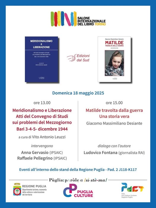 Domenica 18 maggio 2025 al Salone del libro 2025 di Torino (stand Regione Puglia, pad. 2, J118-K117), Anna Gervasio, direttrice Ipsaic e Raffaele Pellegrino, vicepresidente Ipsaic, presenteranno il volume