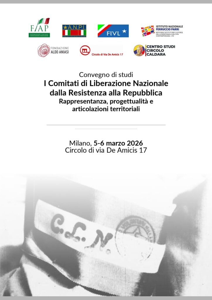 I Comitati di Liberazione Nazionale dalla Resistenza alla Repubblica (Milano, 5-6 marzo) Pubblicato il 5 Marzo 2026 di Ipsaic Nei giorni 5 e 6 marzo, presso il Circolo di via De Amicis 17 di Milano, si terrà il Convegno di Studi dal titolo: I Comitati di Liberazione Nazionale dalla Resistenza alla Repubblica Per l'IPSAIC interverrà nella sessione pomeridiana del 5 marzo Anna Gervasio, Direttrice IPSAIC